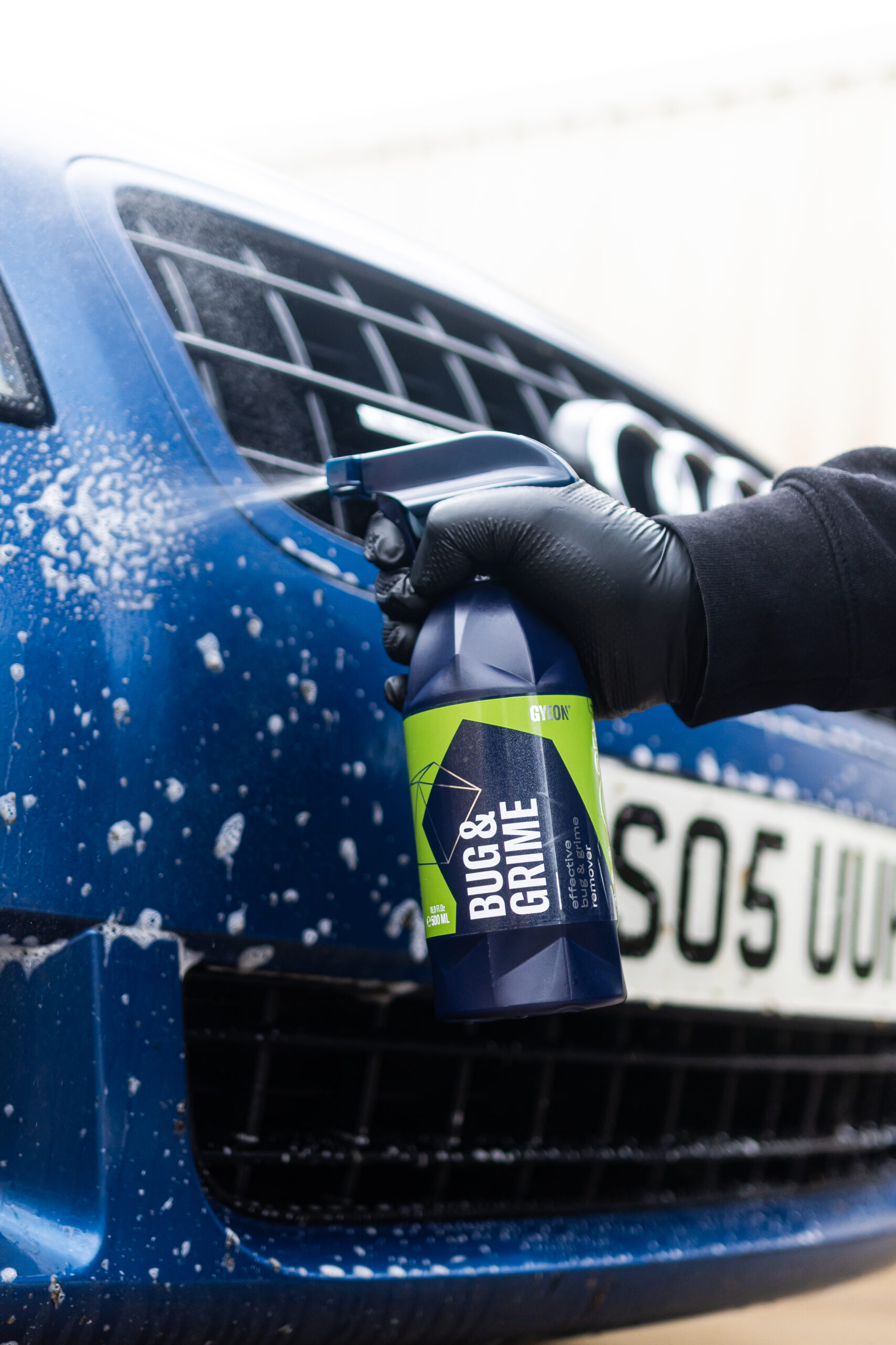 Chỉ cần xịt, chờ 45-60 giây và rửa sạch bằng vòi áp lực — Q²M Bug&Grime giúp loại bỏ đến 90% chất bẩn trên bề mặt xe.